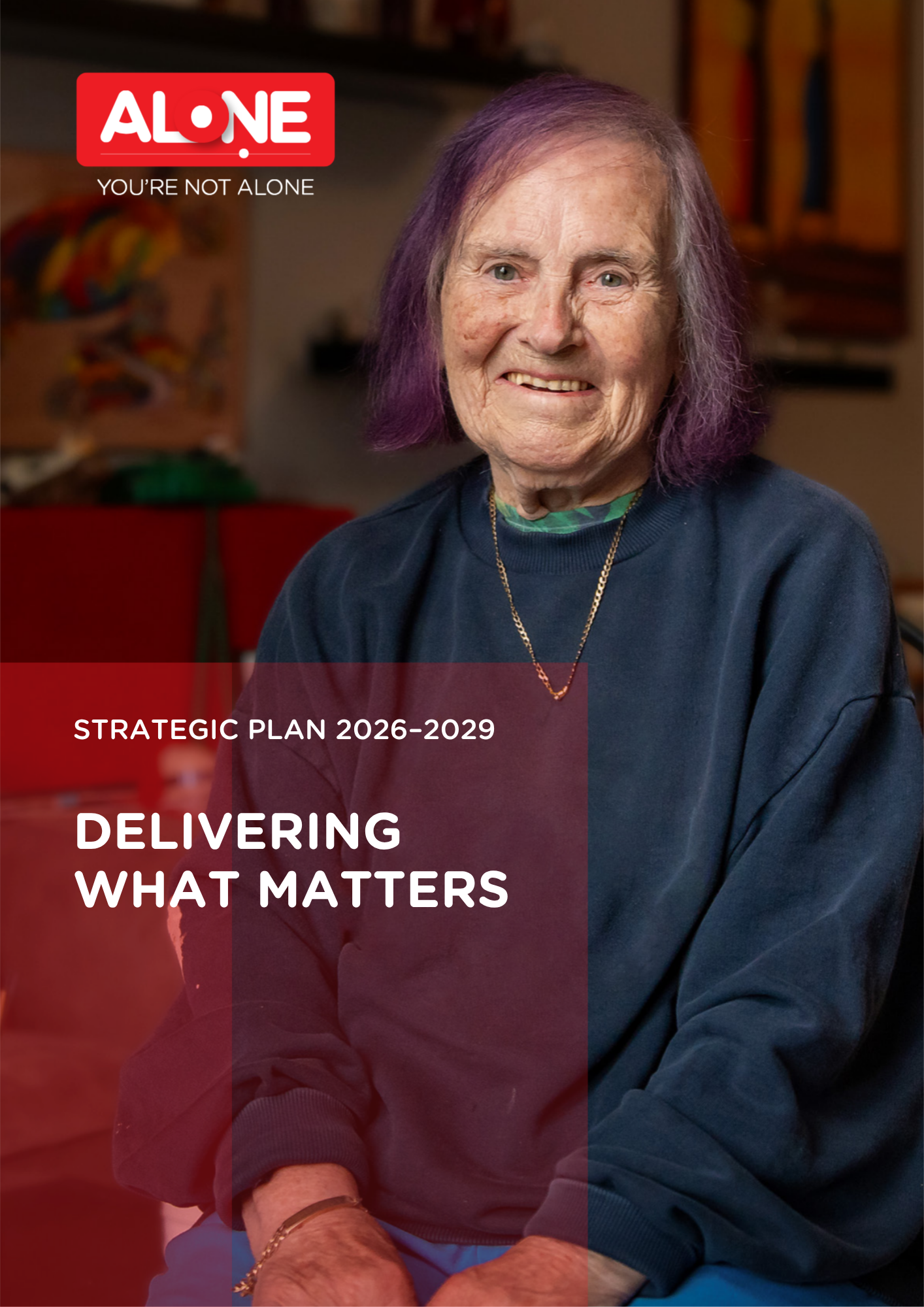 ALONE’s Strategic Plan 2026–2029 sets out our commitment to ensuring that every older person in Ireland can age with dignity, independence and connection in their own home and community. As Ireland’s population continues to age, we recognise that too many older people still face isolation, inequality and difficulty accessing the supports they need. Through this plan, we aim to address these challenges by expanding and strengthening our services, ensuring they are accessible, person-centred and grounded in evidence.