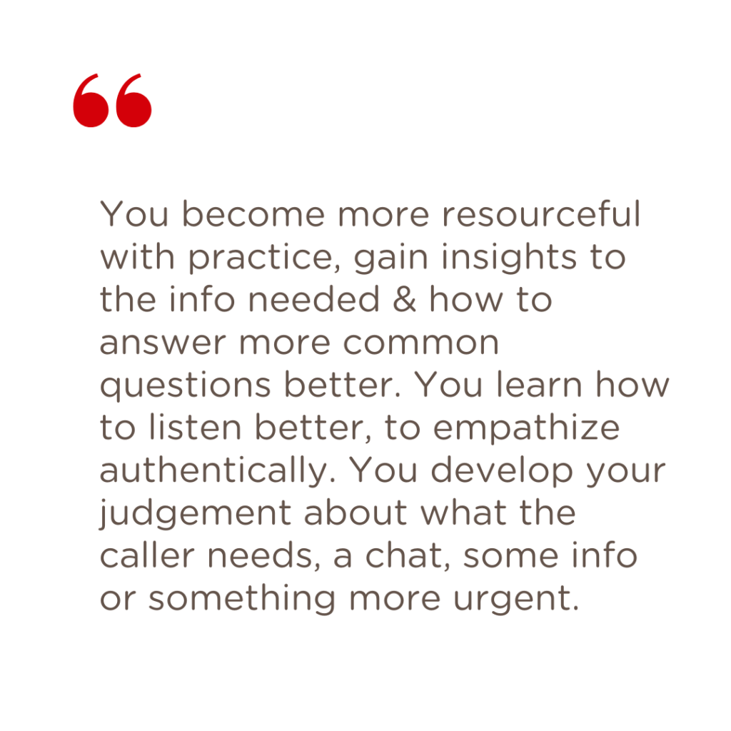 - 6 months of volunteering for the Telephone and NSRL roles